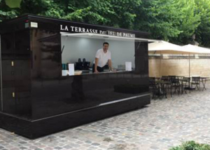 Le kiosque de la terrasse du jeu de paume est un kiosque situé en centre ville. Se déplace grâce à un véhicule tracteur. Modèle Le Novakiosk Laqué Surface : 10m²
