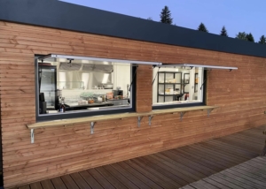 Kiosque de restauration sur mesure pour l'activité d'un professionnel en service additionnel pour une Auberge/ hôtel restaurant en Cerdagne. Offre de restauration: Modèle Novakube Bistro 1 module en 6000x2500 Kiosque de restauration sur mesure fixe, [...]