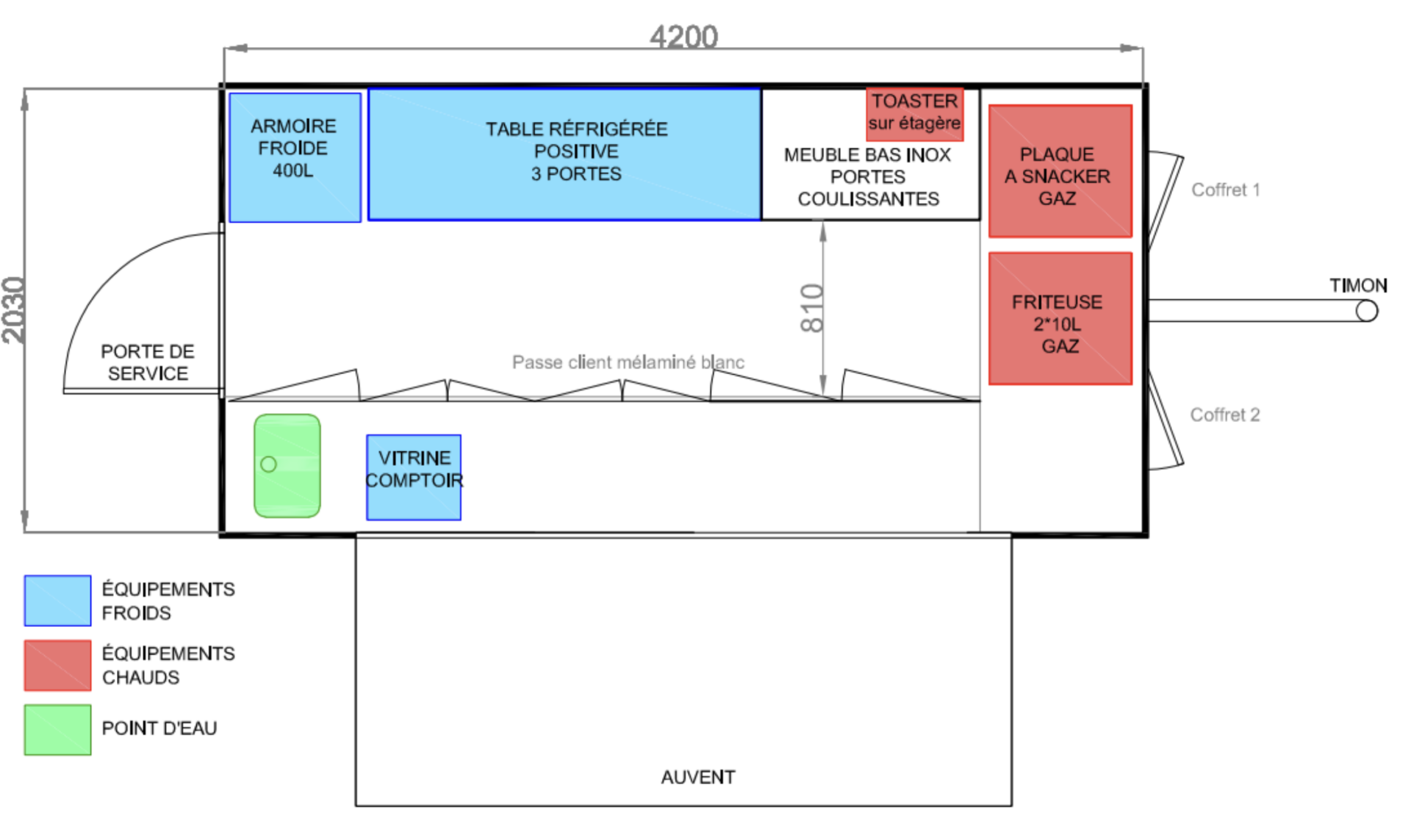 Format idéal pour travailler à deux ou trois personnes dans la remorque food truck.