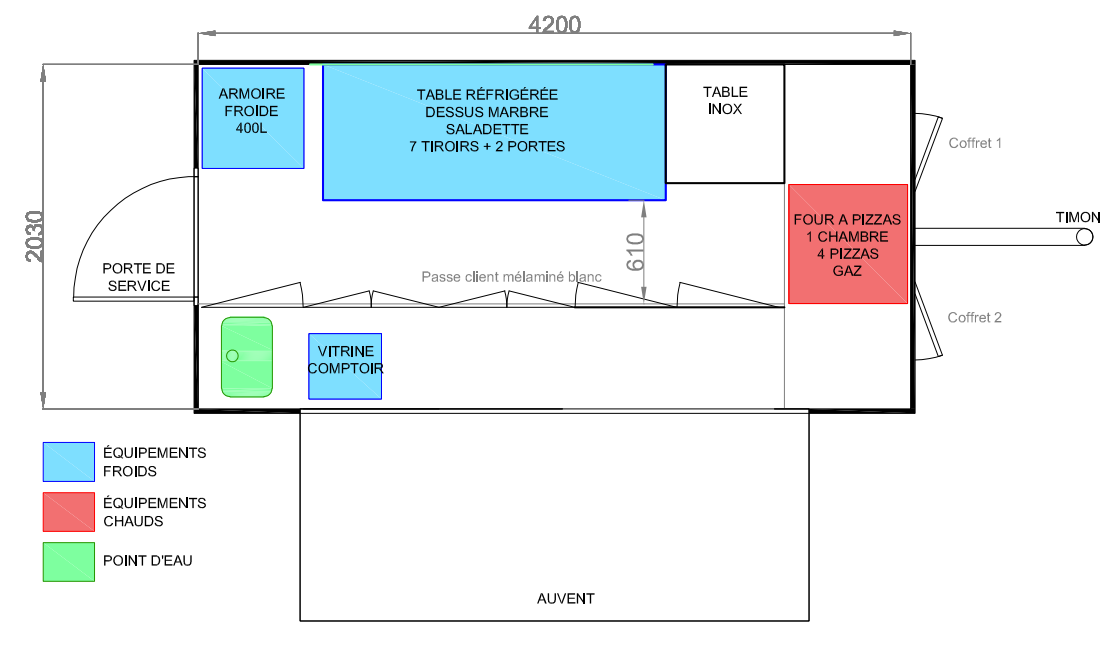 NOVATRUCK Remorque foodtruck 4000 :  4050(L)x2200(l)x2100(h)mm
